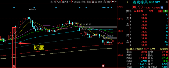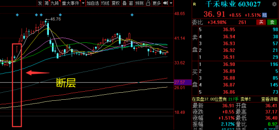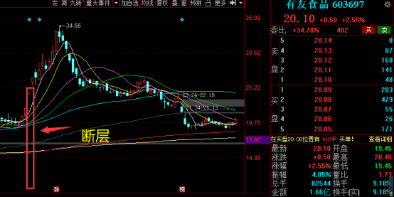 像涪陵榨菜、千禾味业、有友食品等一系食品股,在断层后都走出了一波漂亮的走势,但是过了不久整个食品板块就随着海天味业的大跌而结束了这一波主升行情,而很多断层票也跌回了缺口,甚至从高点跌去了30%或者50%都有。那么在这种情况下,跌到成本线懂得止损还好,如果硬扛的话就会从盈利到亏损再到巨亏。