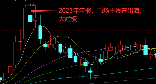 2023年年报的时候有点特殊,出业绩的时候刚好市场在猛炒出海,由于资金属性参与所造成的股性改变,再看后面的话,也是跟随出海热炒的退潮而大幅下跌,此时股价呈现出比较明显的热门投机走势,但是这些资金退出以后,股价又创了新高。