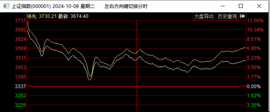 另一个更极端的例子就是2024年10月8日,经过一整个国庆假期的发酵、港股大幅上涨,10月8日大盘接近涨停开盘,随后高位放出巨量。
