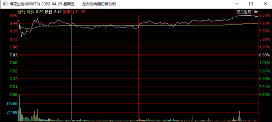 梅花生物2022年一季度业绩超预期,4月29日走出净利润断层,由于梅花生物前几日大幅下跌,所以此时有较多资金趋于谨慎的原因纷纷出逃,但是随后在收回了跌幅。在当日梅花生物的开盘价是8.59元,最低价是8.16元,相差了5%。
