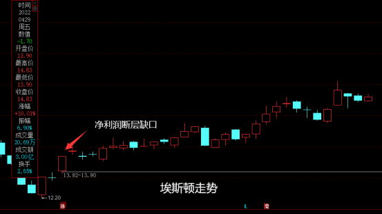 净利润断层,表面上看起来只是依托于跳空走强的图形技术,内核其实是交易预期差,这个预期差就是业绩超预期后,当前股价与价值产生的预期差。