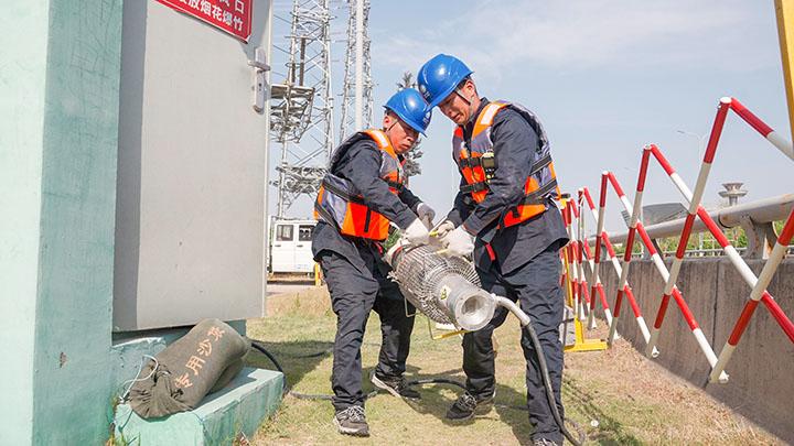 郑州供电公司员工进行防汛设备操作演练。罗浩 摄