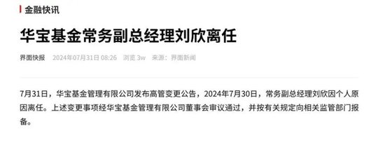 华宝基金的上一任常务副总经理刘欣于2024年7月31日离任,后转任摩根士丹利基金首席市场官。